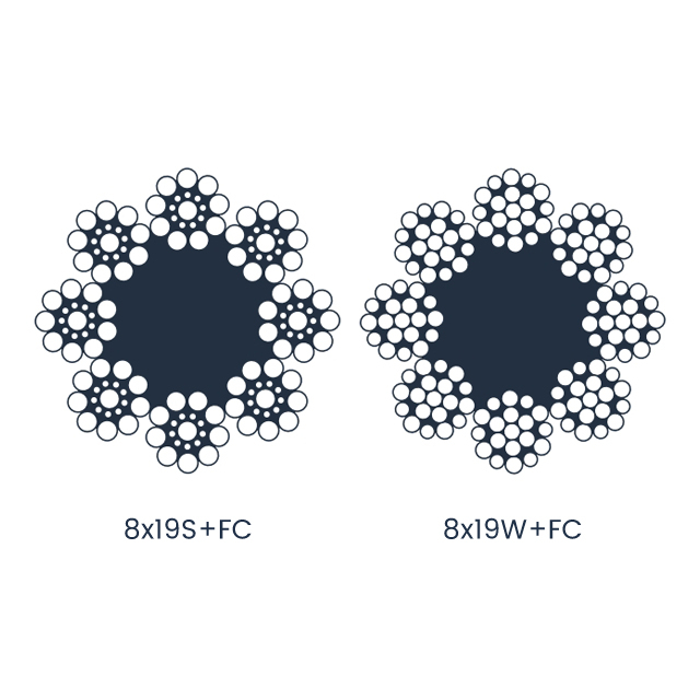 Choose 8×19S for applications requiring frequent bending (e.g., small pulleys, dynamic lifting) due to its superior flexibility; 8×19W is better for static heavy loads or high-strength needs (e.g., cargo securing).