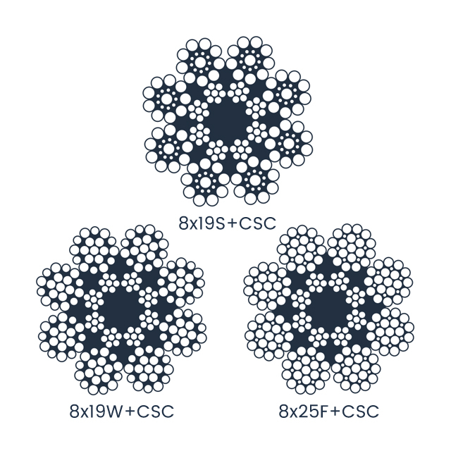 8×25F-CSC: Fill lay (more wires per strand) delivers maximum durability, preferred for heavy-duty elevators (e.g., freight elevators, hospital bed elevators, 2000+ kg capacity).